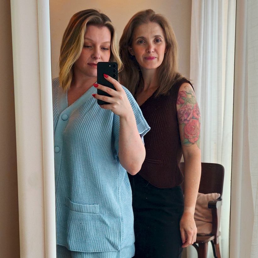 A Nuéh nasceu onde a vida acontece de verdade: entre risos de família, taças de vinho, cabelos presos às pressas e aquela coincidência gostosa de abrir o armário e descobrir que, de novo, escolhemos peças parecidas. Marcia e Carla — amigas, cunhadas, comadres — sempre curtiram as coisas uma da outra: o jeito de se arrumar, o penteado, o olhar para a elegãncia que se esconde no simples. Desse encontro de estilos veio a vontade de traduzir, em roupa, o que nos move: leveza, autenticidade e sentimento.